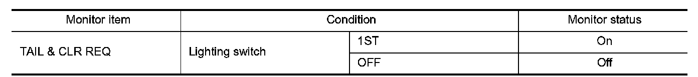 1.Select "TAIL & CLR REQ" of IPDM E/R data monitor item.