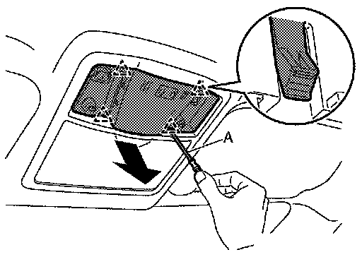 5.Disengage map lamp assembly fixing pawls, and then remove map lamp assembly.