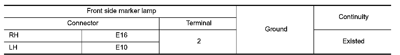 Check continuity between front side marker lamp harness connector and ground.