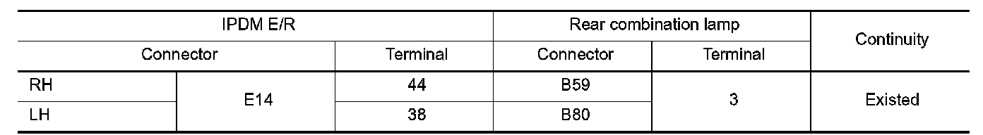 3.Check continuity between IPDM E/R harness connector and rear combination lamp harness connector.