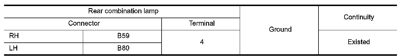 Check continuity between rear combination lamp harness connector and ground.