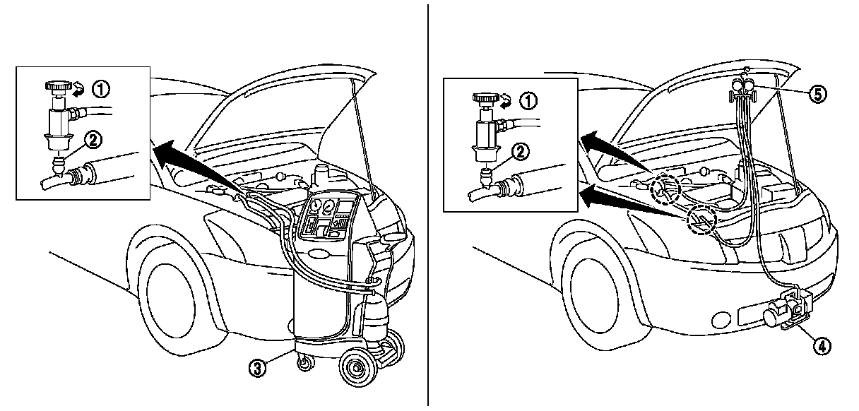 To prevent fluorescent indicator from entering, prepare and use exclusive hose for EV (electric vehicle) and HEV (hybrid vehicle) when connecting recovery/recycling/recharging equipment.