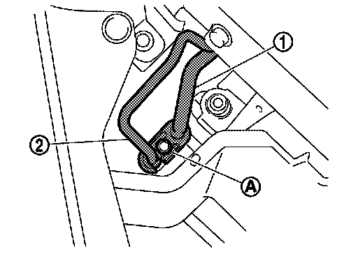 3.Remove mounting bolt (A), and then disconnect high-pressure flexible hose (1) and high-pressure pipe (2) from condenser.