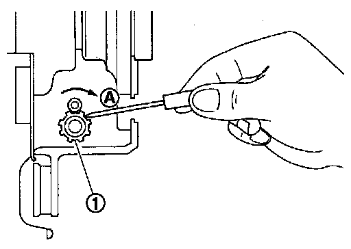 b.Using suitable tool, rotate adjuster (1) in the direction (A) to retract and loosen brake shoe.