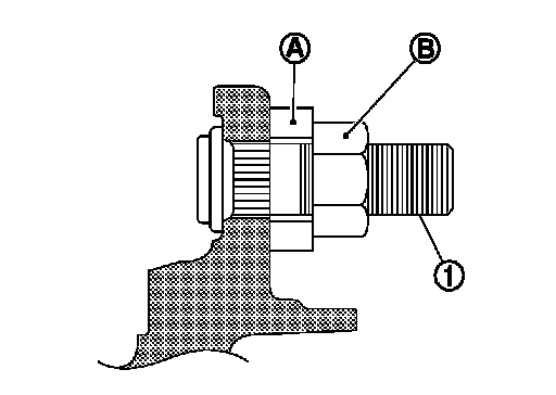 - Place a washer (A) as shown in the figure to install the hub bolts (1) by using the tightening force of the nut (B).