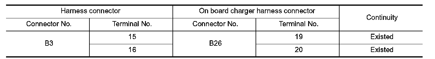 2.Check the continuity between the harness connector and the on board charger harness connector.