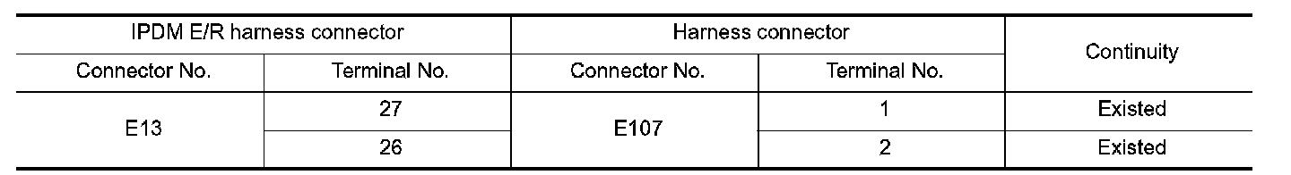 2.Check the continuity between the IPDM E/R harness connector and the harness connector.
