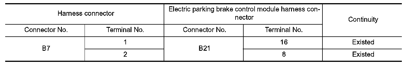 NO- Repair the main line between the harness connector B7 and the electric parking brake control module.