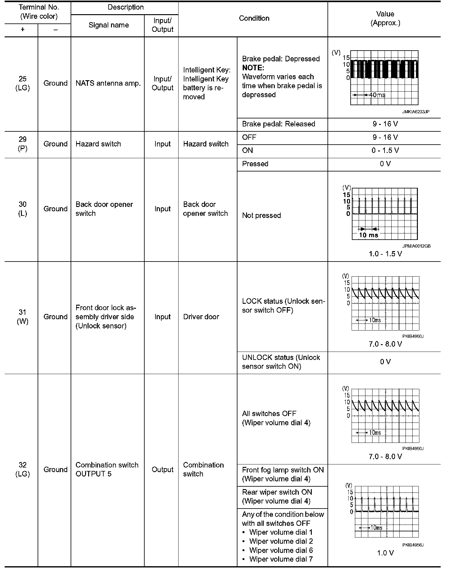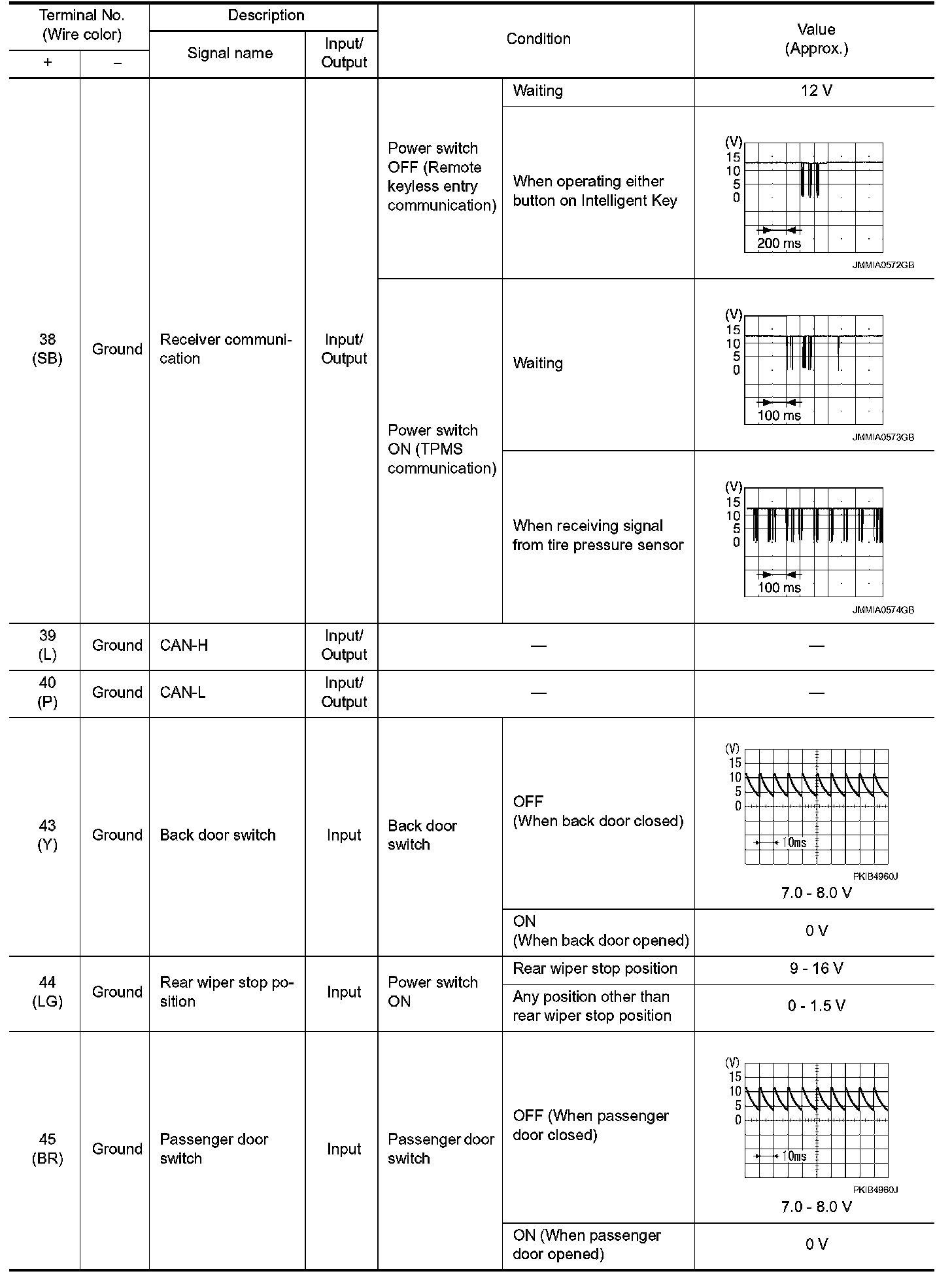 Pinout Values and Diagnostic Parameters
