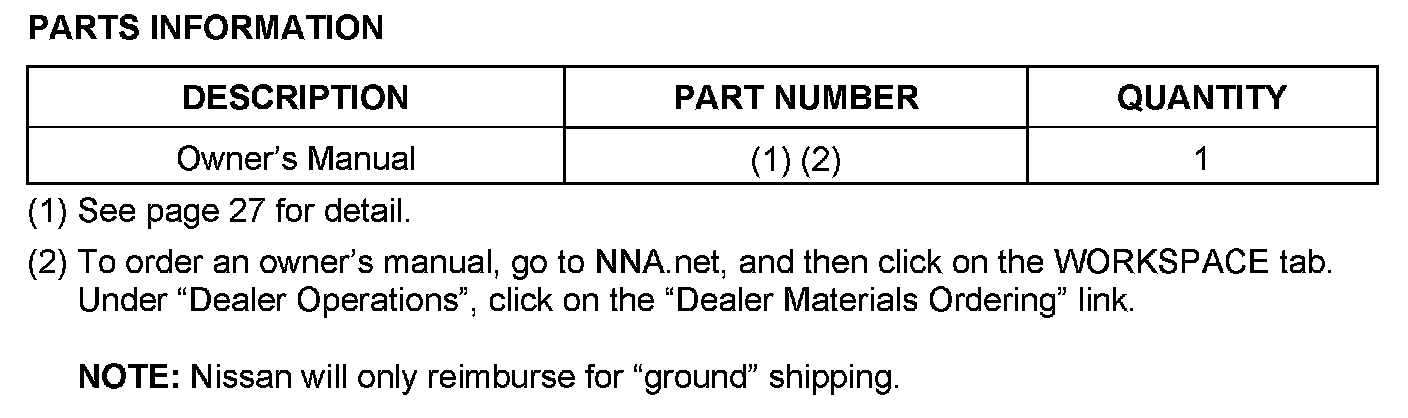 Based on the vehicle production date, Nissan would like to offer a complimentary update of the vehicle software and a new vehicle owner's manual that will reflect the update. Nissan has added an additional driver convenience alert designed to notify the driver if their door is opened while the vehicle is still in the ON or "READY" mode.