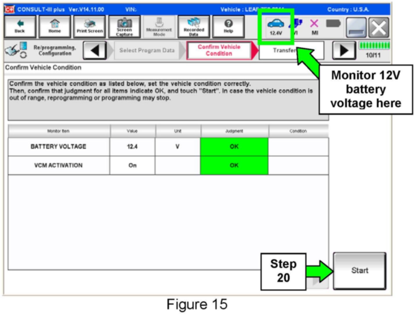 20. With battery voltage in the green, select Start.