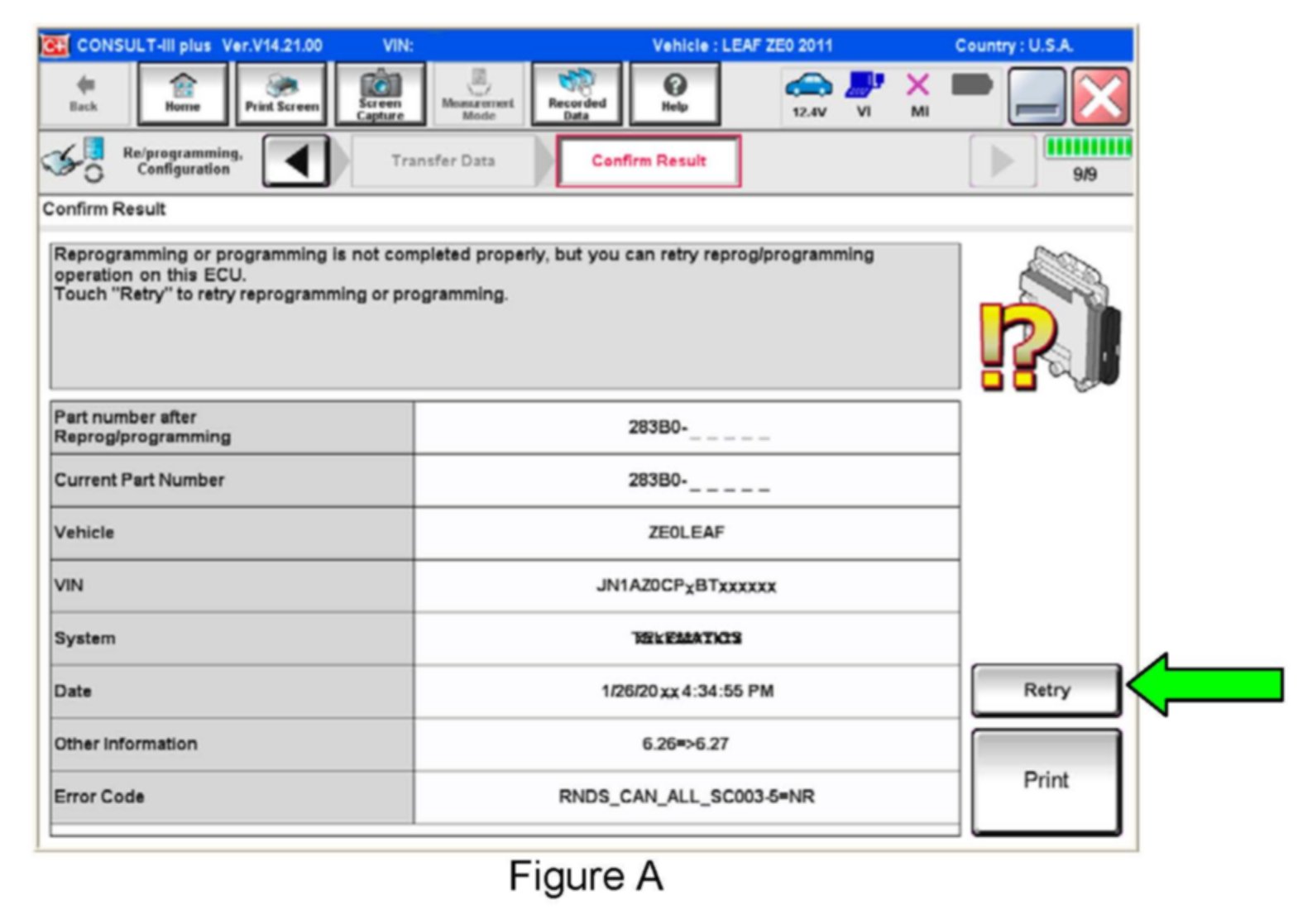 ^ If the VCM part number is not in the table above, this campaign may not apply or it has already been done. Close C-III plus (select Home, and then the "X") and the CONSULT PC, disconnect from the vehicle, and then recheck Service Comm for campaign eligibility.