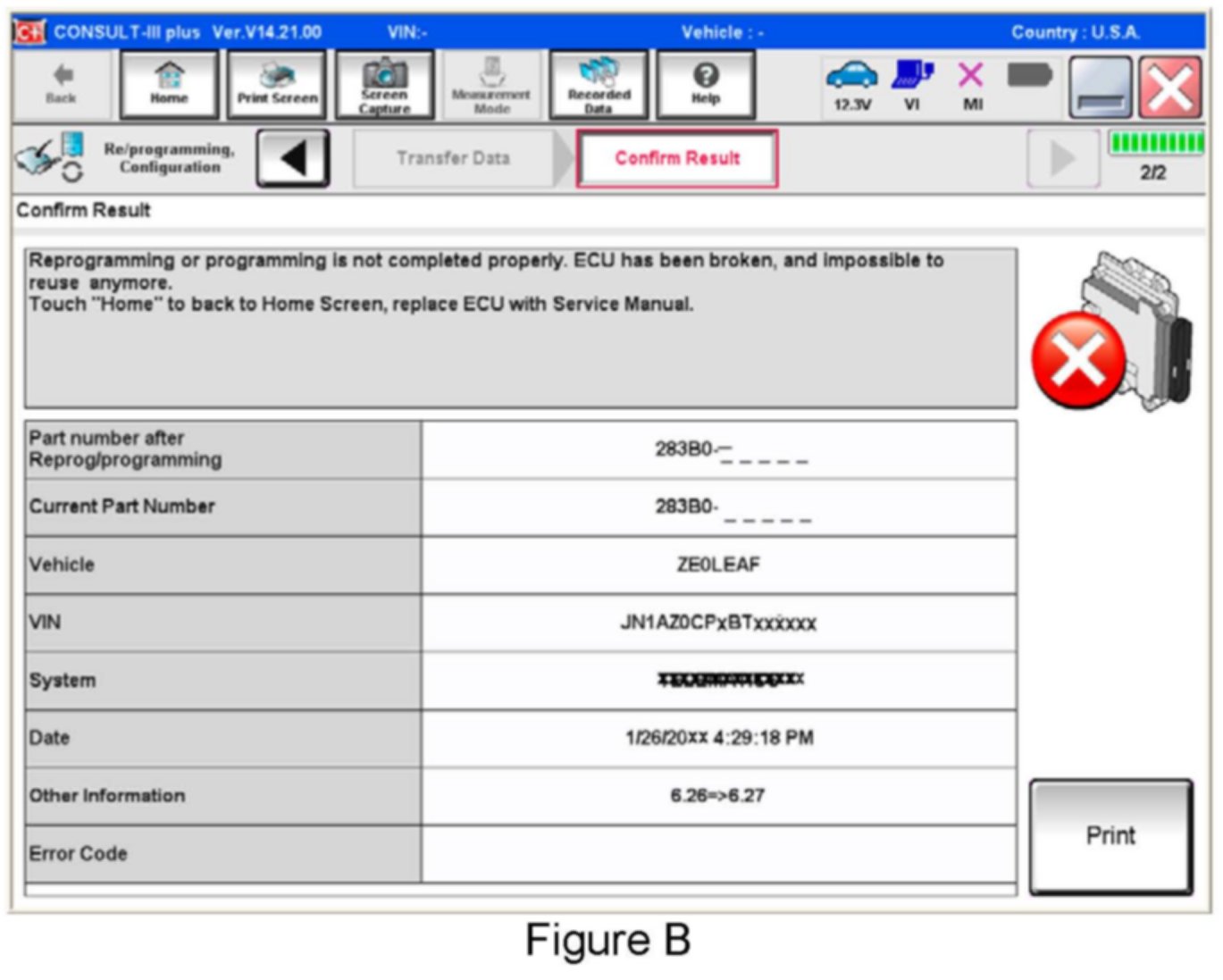 OR: If reprogramming does not complete and the X displays as shown in Figure B: