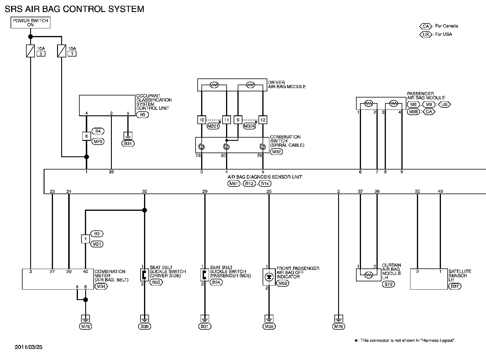 For connector terminal arrangements, harness layouts, and alphabets in a (option abbreviation; if not described in wiring diagram), refer to "Connector Information"