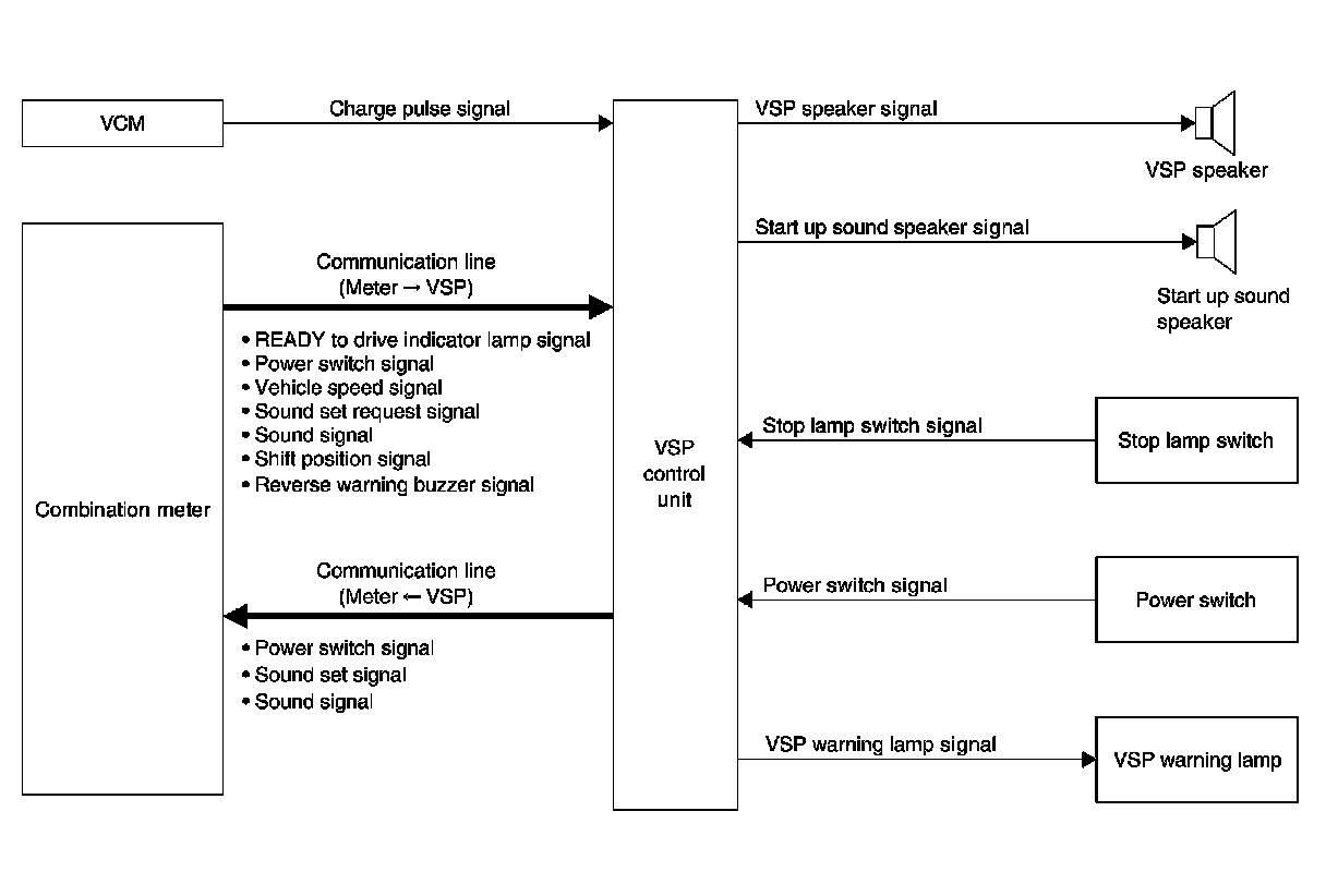 - The combination meter sends the following signals to the VSP control unit via communication line.