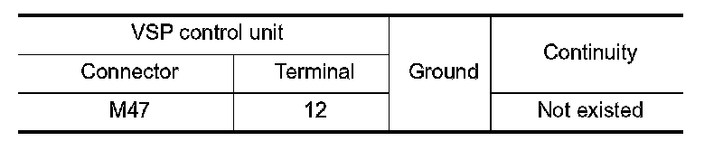 4.Check continuity between VSP control unit harness connector and ground.