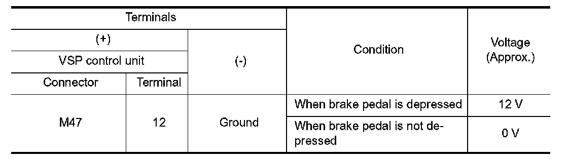 3.Check voltage between VSP control unit harness connector and ground.