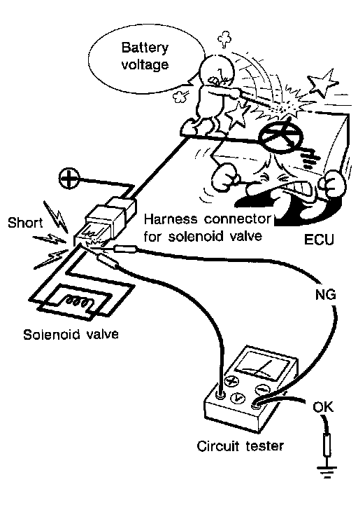 - When using a DMM, be careful not to let test probes get close to each other to prevent the power transistor in the control unit from damaging battery voltage because of short circuiting.