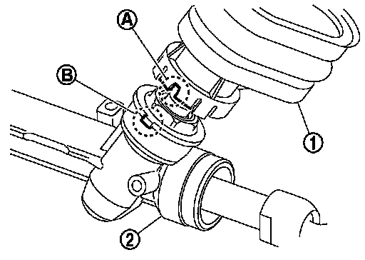 Install fire wall seal (1) so that the groove (A) for locating is securely set to gear housing assembly (2) protrusion (B).