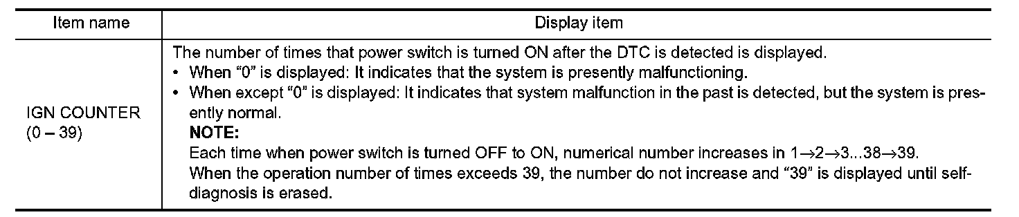 The following vehicle status is recorded when DTC is detected and is displayed on CONSULT.