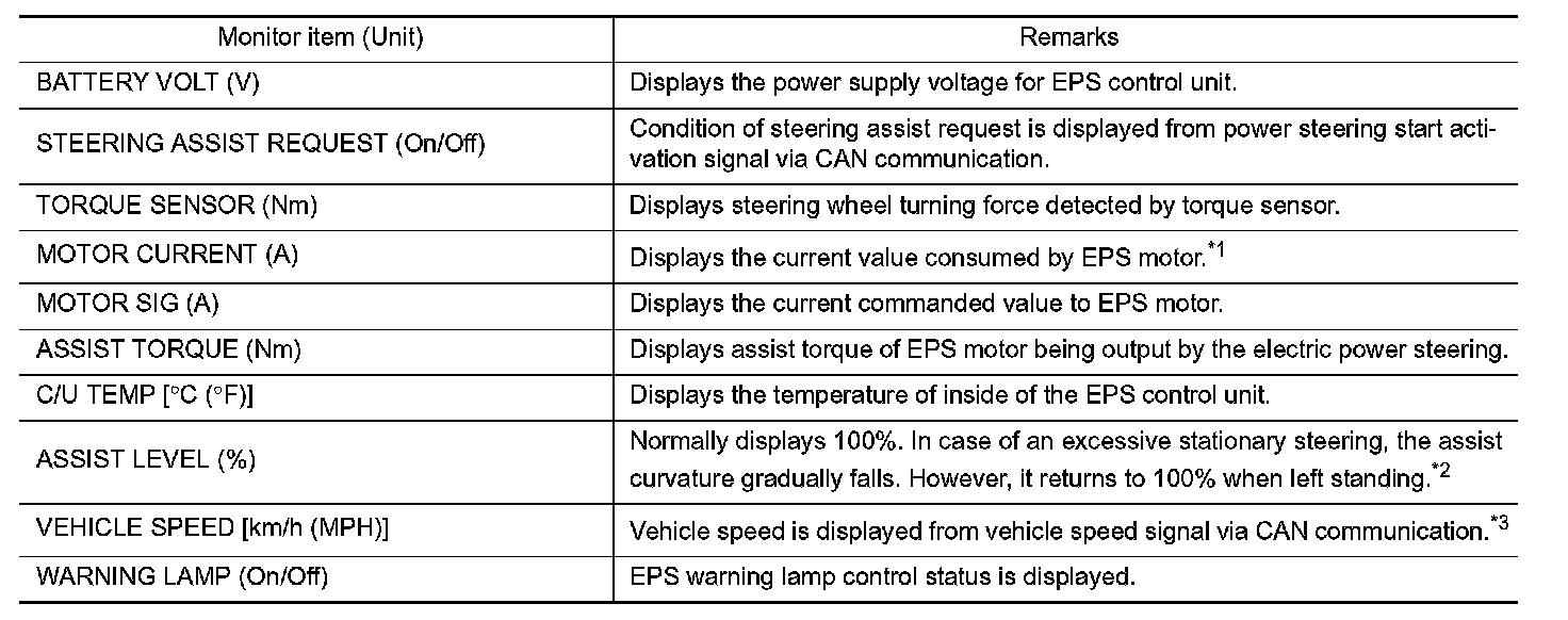 *1: Almost in accordance with the value of "MOTOR SIG". It is not a malfunction though these values are not accorded when steering quickly.