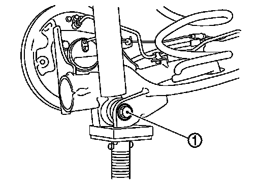 10.Remove shock absorber mounting bolts (lower side) (1) with power tool. Refer to "Removal and Installation" Removal And Installation.