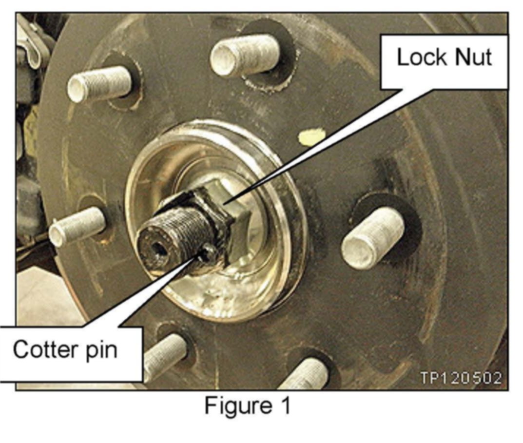 4. Re-install the (front or rear) wheel bearing Lock Nut and Cotter Pin per the Service Manual instructions.