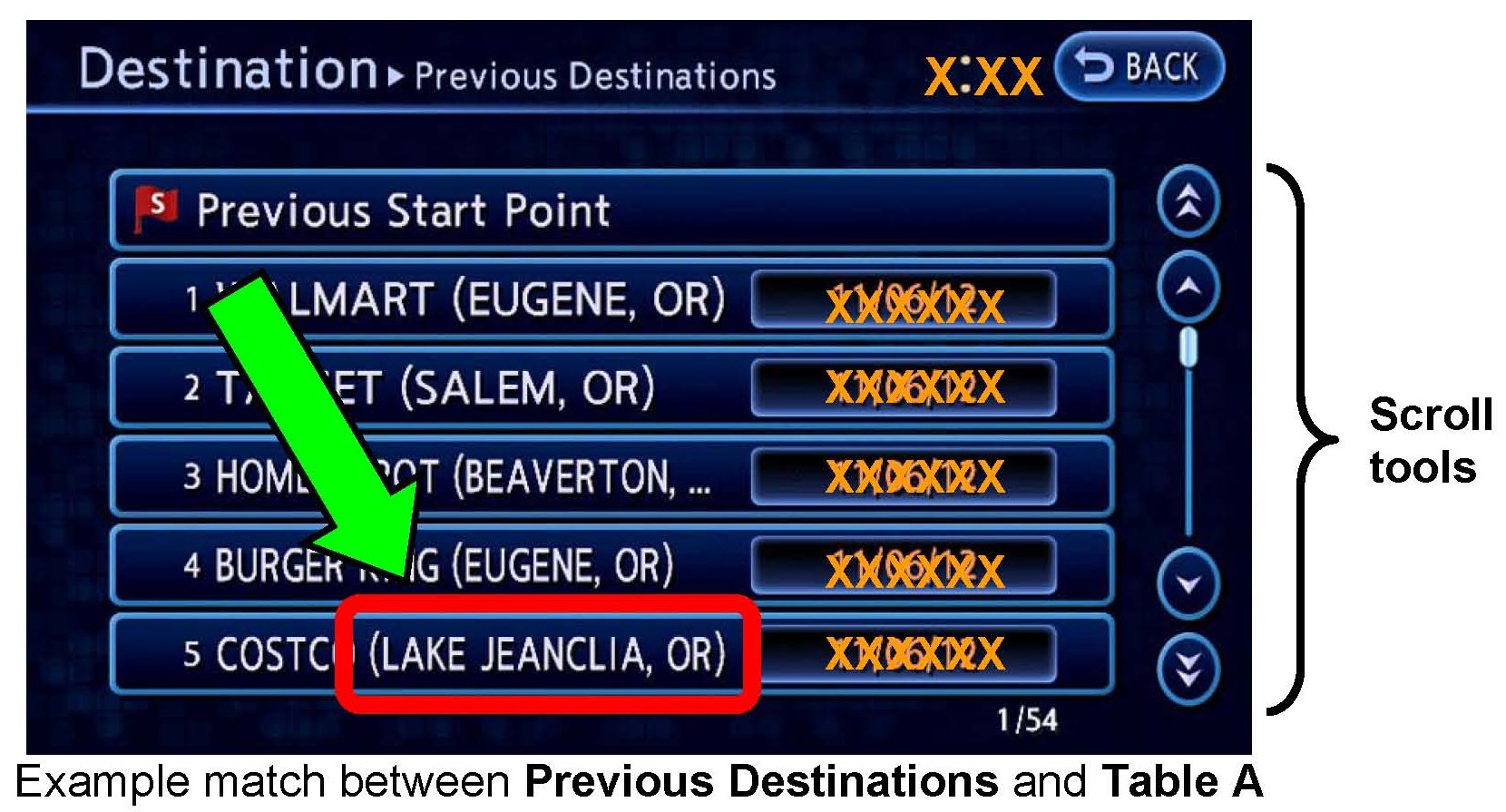 2. Go to MENU>Destination>Previous Destinations.