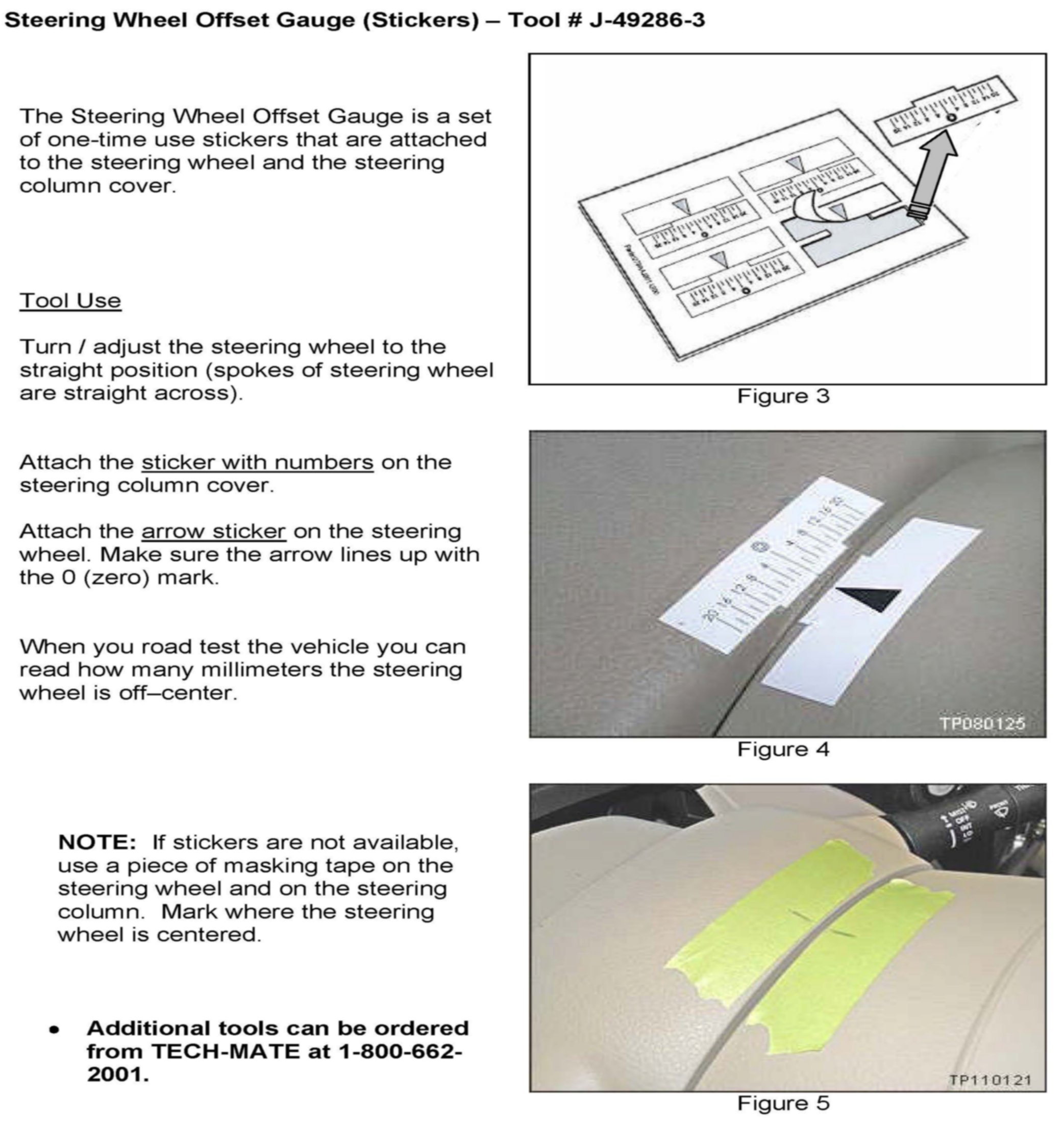 5. When the road test is completed, remove the Road Crown Gauge, leave the Steering Wheel Off-Set Gauge in place until the Service Procedure is complete.