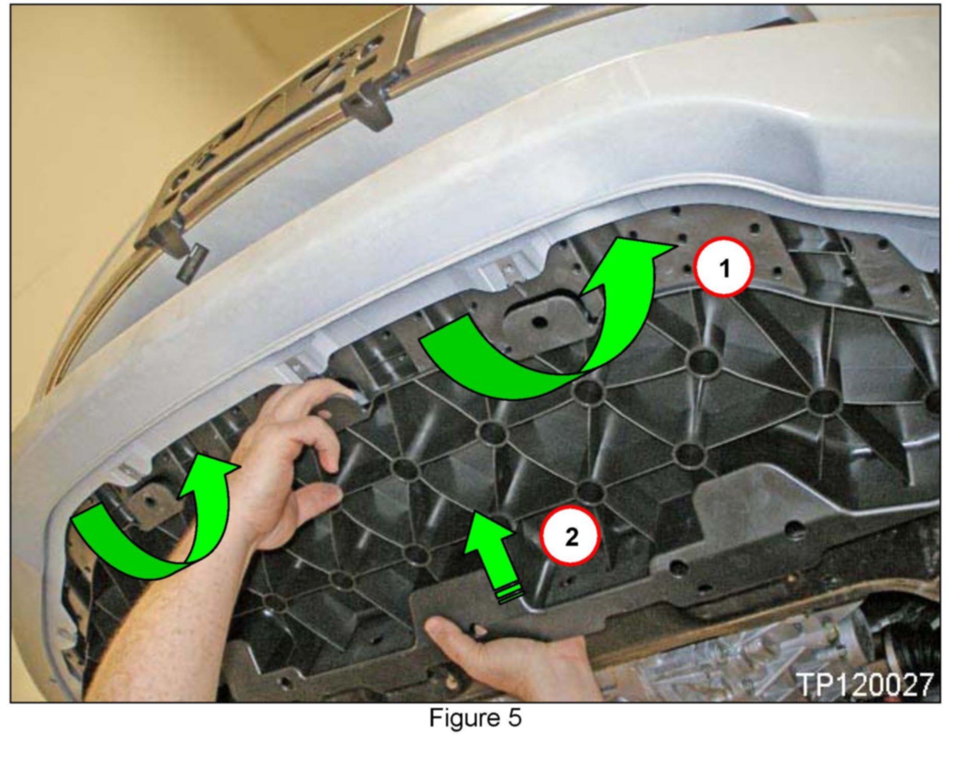 5b. Next, position the front of the apron over the bumper fascia's flanges, and then push forward (see Figure 5).