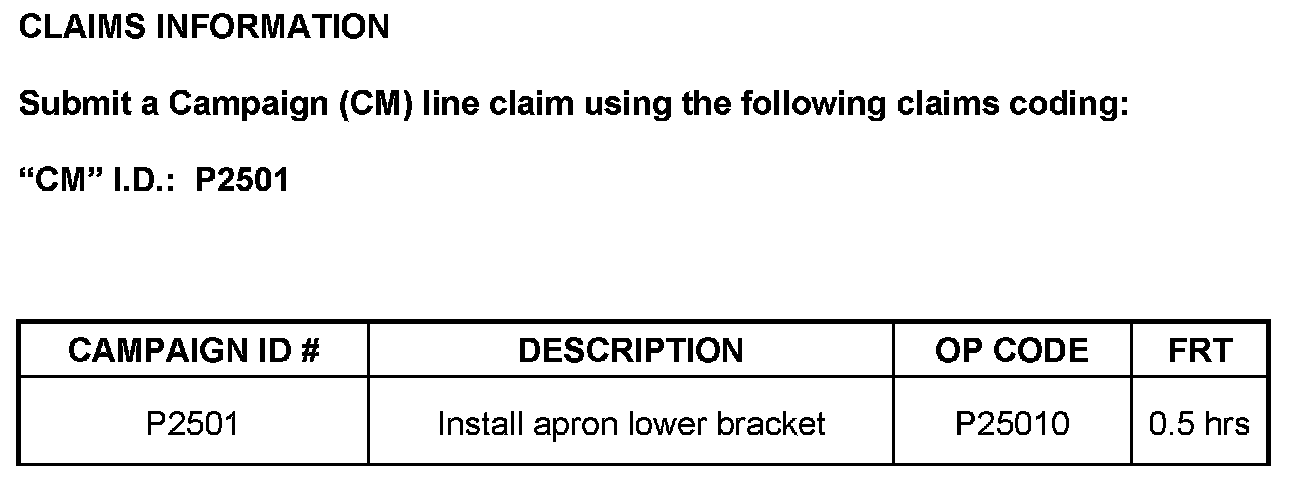 Campaign P2501 - Apron Lower Bracket: Overview
