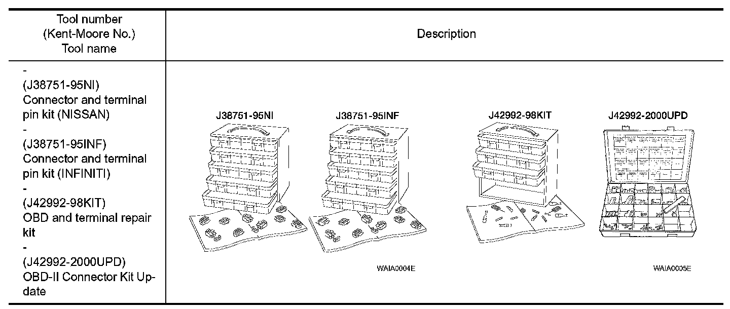 - The connector and terminal pin kits contain some of the most commonly used NISSAN/INFINITI connectors and terminals. For detailed connector and terminal pin replacement procedures, refer to the latest NISSAN/