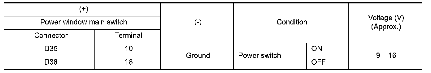 3.Check voltage between power window main switch harness connector and ground.