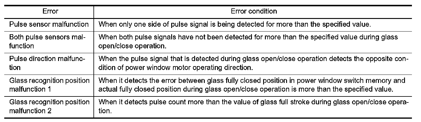 Perform initial operation to recover when switched to fail-safe mode. However, it switches back to fail-safe control when malfunction is found in power window main switch or front power window motor (driver side).