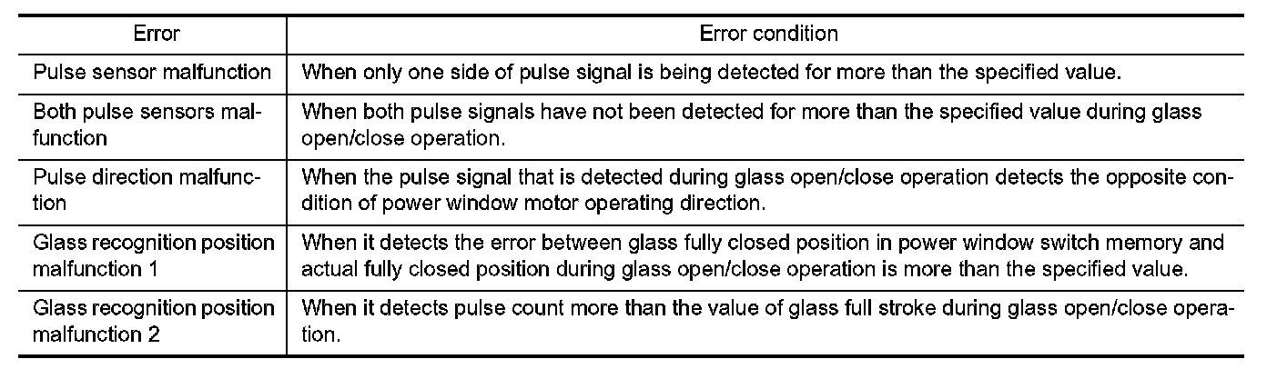 Perform initial operation to recover when switched to fail-safe mode. However, it switches back to fail-safe control when malfunction is found in power window main switch or front power window motor (driver side).