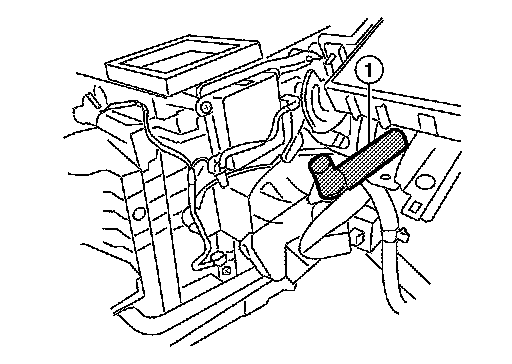 The aspirator (1) is located on driver side of heater & cooling unit assembly. It produces vacuum pressure due to air discharged from the heater & cooling unit assembly, continuously taking compartment air in the aspirator.