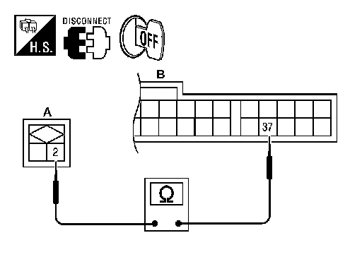 M34 (A) terminal 2 and A/C auto amp. harness connector M37