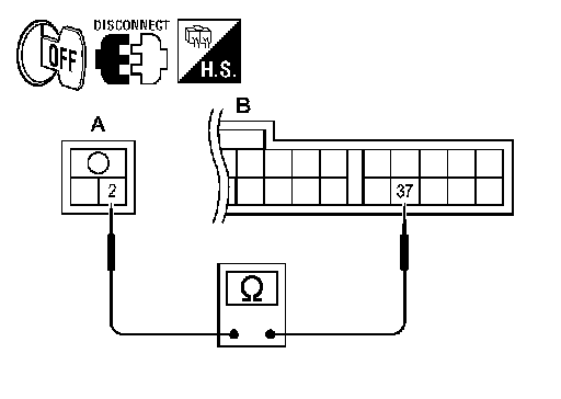 (A) terminal 2 and A/C auto amp. harness connector M37 (B)