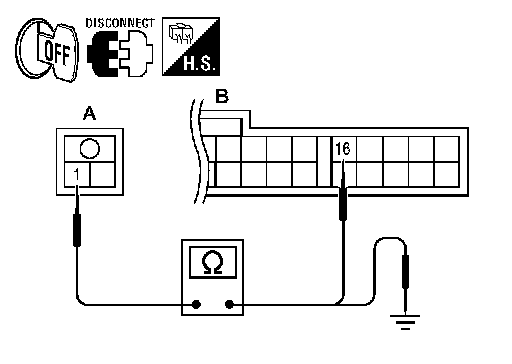 (A) terminal 1 and A/C auto amp. harness connector M37 (B)