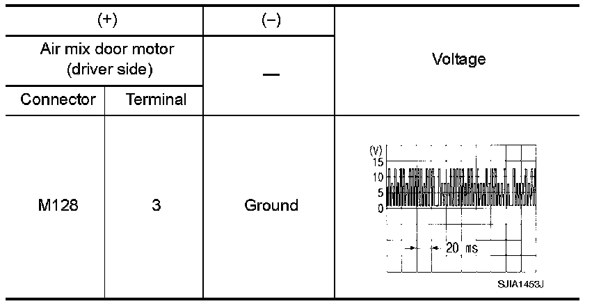 Check the output waveform (LAN signal) between air mix door motor (driver side) harness connector M128 terminal 3 and ground using an oscilloscope.
