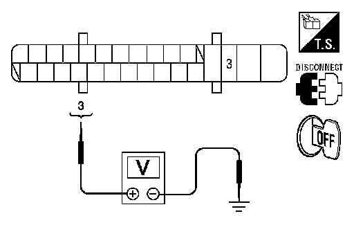3.Check voltage between ABS actuator and electric unit (control unit) connector E26 terminal 3 and ground.