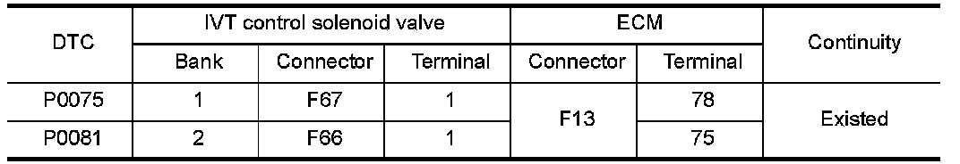 2.Check resistance between intake valve timing control solenoid valve terminals as per the following.