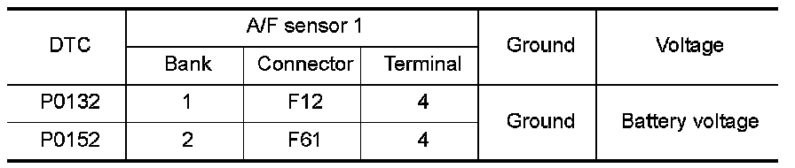 P0132, P0152 A/F SENSOR 1