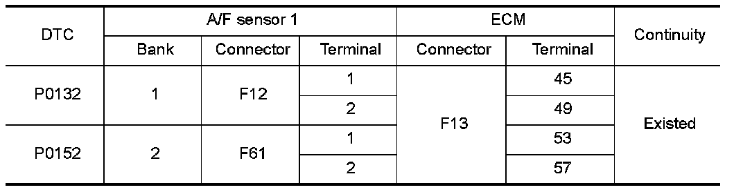 - Harness for open or short between A/F sensor 1 and fuse