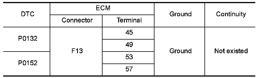 4.Check the continuity between A/F sensor 1 harness connector and ground, or ECM harness connector and ground.