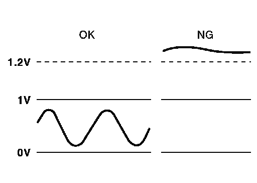 To judge the malfunctions of heated oxygen sensor 2, ECM monitors whether the voltage is unusually high during various driving conditions such as fuel cut.