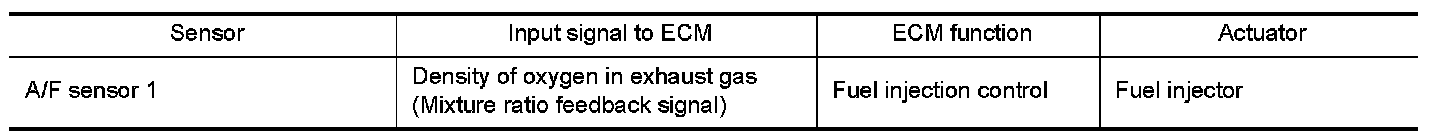 With the Air/Fuel Mixture Ratio Self-Learning Control, the actual mixture ratio can be brought closely to the theoretical mixture ratio based on the mixture ratio feedback signal from A/F sensor 1. The ECM calculates the necessary compensation to correct the offset between the actual and the theoretical ratios.