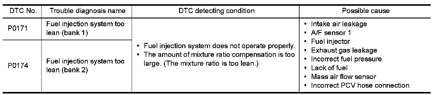 P0171, P0174 FUEL INJECTION SYSTEM FUNCTION