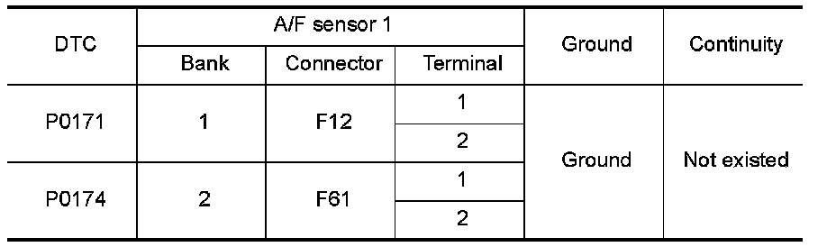 5.Check the continuity between A/F sensor 1 harness connector and ground, or ECM harness connector and ground.