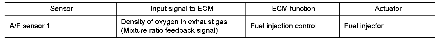 With the Air/Fuel Mixture Ratio Self-Learning Control, the actual mixture ratio can be brought closely to the theoretical mixture ratio based on the mixture ratio feedback signal from A/F sensor 1. The ECM calculates the necessary compensation to correct the offset between the actual and the theoretical ratios.